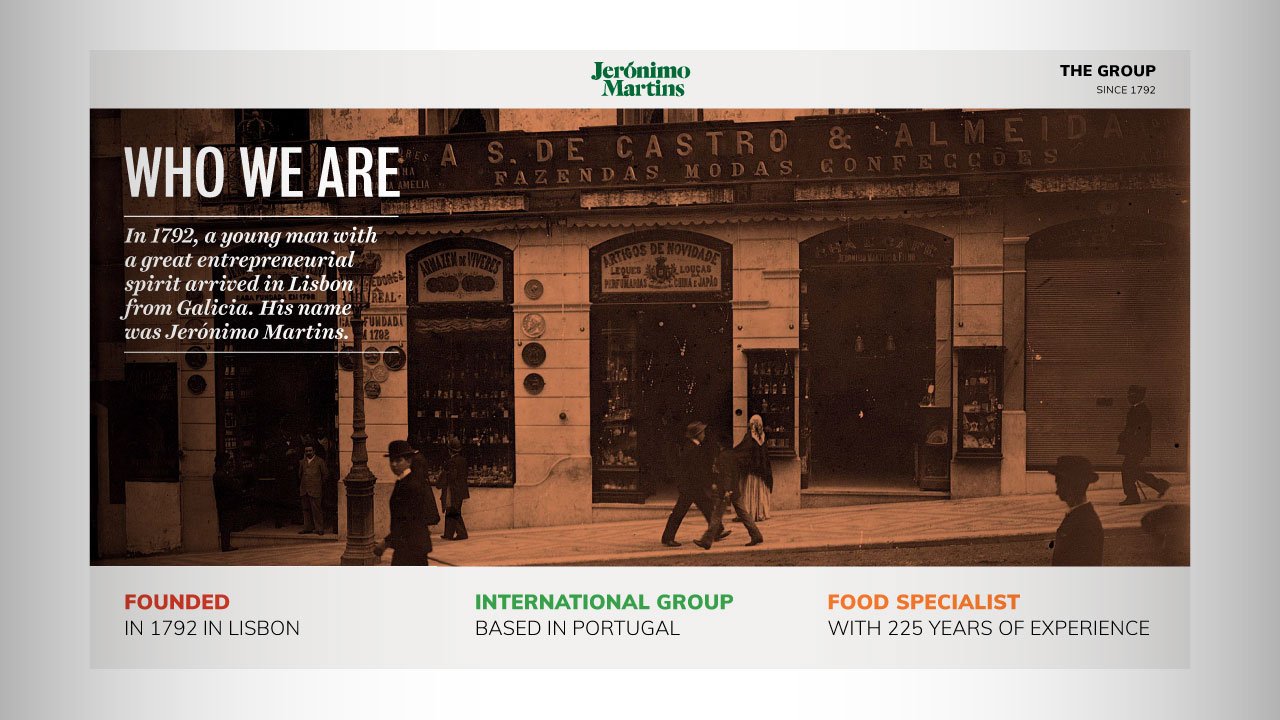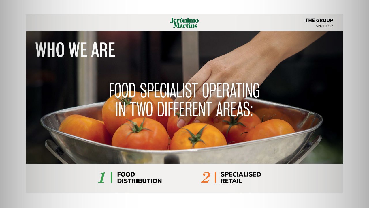 Elaboração da Apresentação Institucional da Jerónimo Martins, com base na nova imagem da marca.